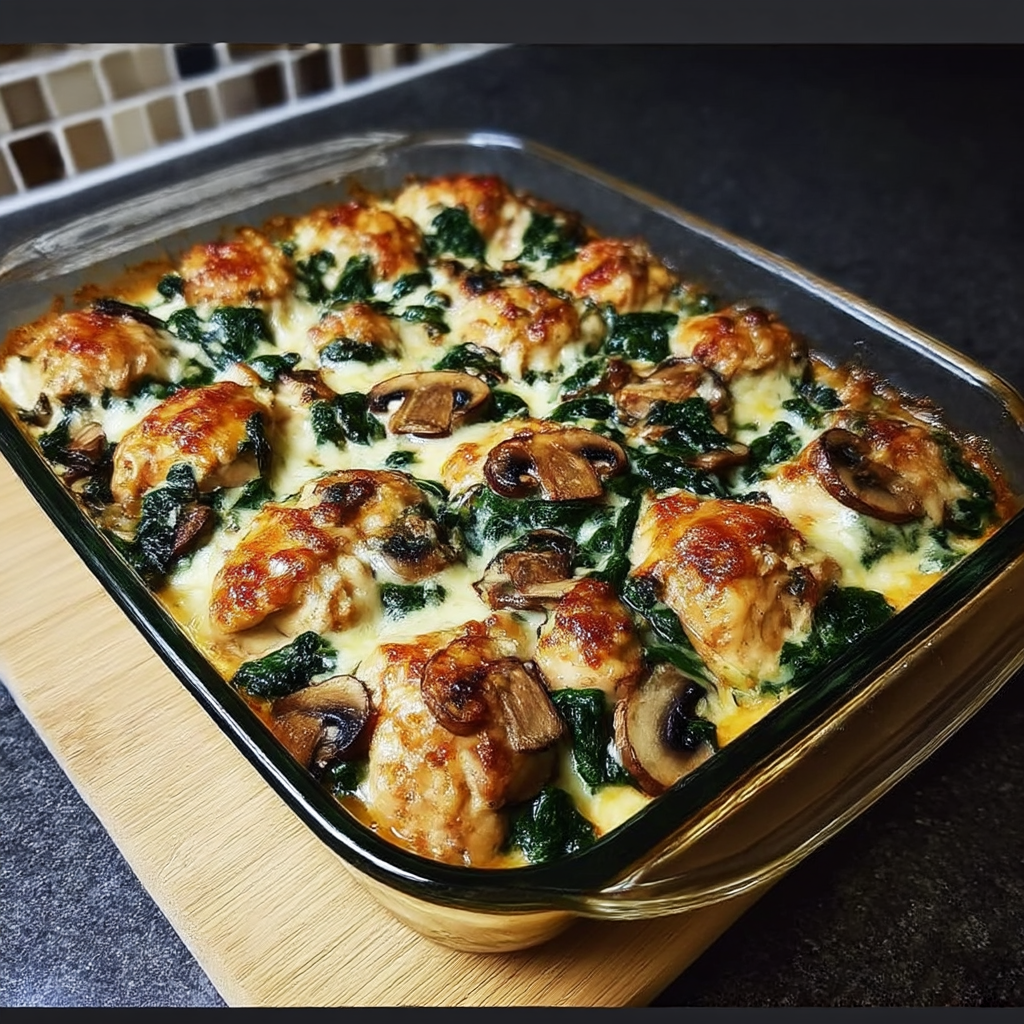 This Chicken, Spinach, and Mushroom Low-Carb Oven Dish delivers rich, satisfying flavors perfect for those