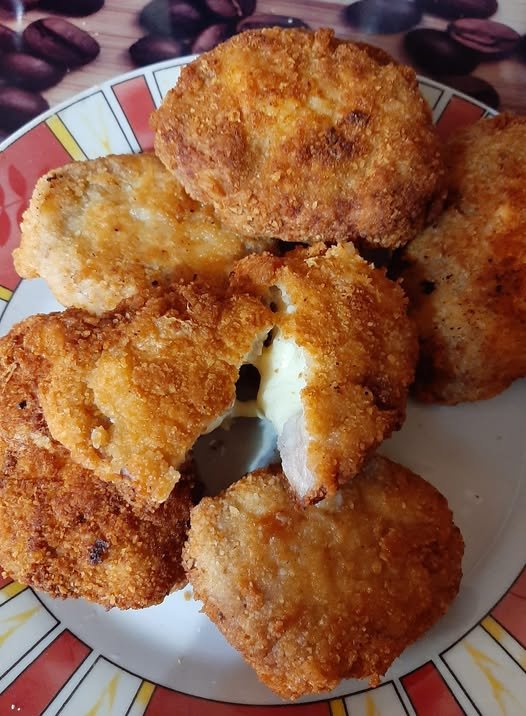 Hungarian Cheese-Stuffed Chicken Patties (Sajttal töltött csirkefasírt) Ingredients For coating: For frying: Instructions
