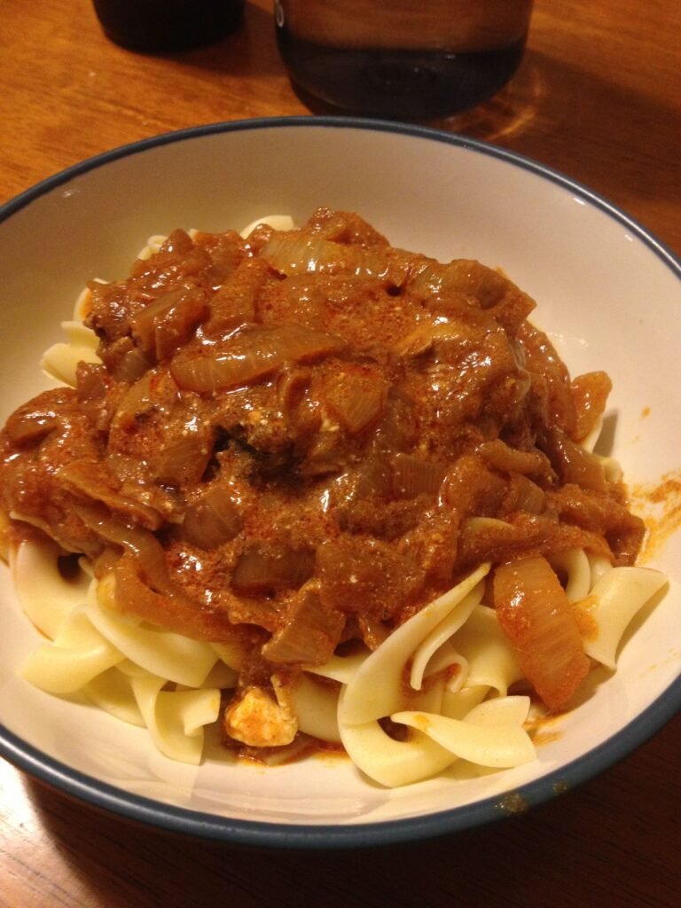 Ingredients Instructions Serve hot with nokedli (Hungarian dumplings), boiled potatoes, or fresh bread. Deeply flavorful,