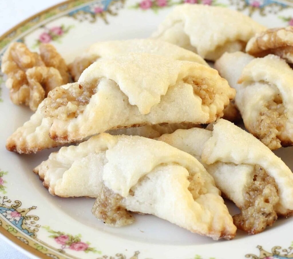 A classic Hungarian dessert with layers of buttery pastry, sweet walnut filling, apricot jam, and