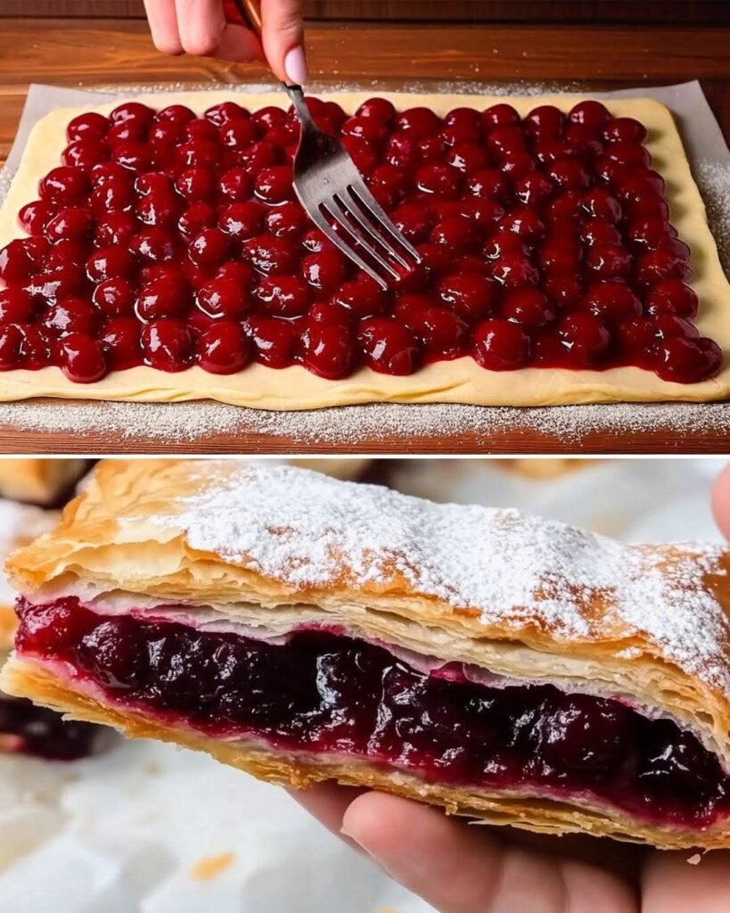Ingredients For the Pastry: For the Cherry Filling: For Finishing: Instructions Slice and serve warm