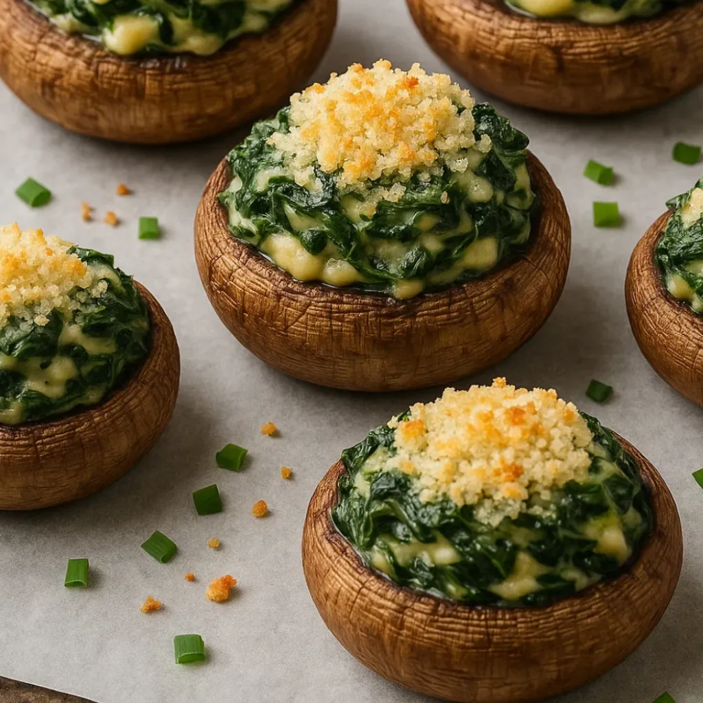 What makes these stuffed mushrooms so irresistible is the perfect balance of earthy mushroom flavor with a rich, creamy filling that’s both sophisticated and comforting. The combination of fresh spinach, aromatic garlic, and melted cheese creates a luxurious texture that transforms simple white mushrooms into elegant bite-sized treasures.